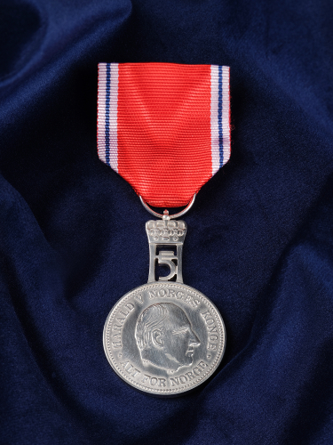 Medaljen blir delt ut i sølv med krone. Han har regjerande monarks portrett med namn og valspråk på framsida og Olavskorset på baksida. Regjerande monarks monogram er plassert over medaljen.