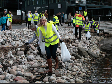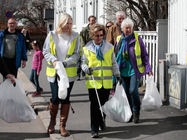 Sammen med Dronning Sonja, dro Kronprinsessen på søppelplukking med Sandefjord søppelplukkerlag. Foto: Lise Åserud, NTB scanpix