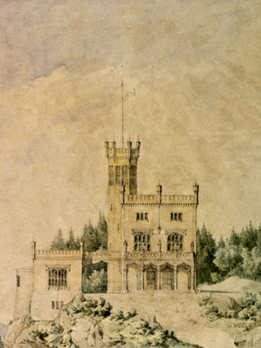 Store deler av Ladegaardsøen – som vi kaller Bygdøy i dag – tilhørte kongefamilien. I følge skribenter i samtiden, ble tomten valgt av Oscar Is sønner under en seiltur sommeren 1847. Plasseringen på toppen av en skrent ned mot sjøen appellerte til tidens sans for dramatisk effekt.