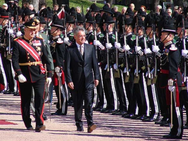 Som regel ønskes gjestene velkommen på Slottsplassen. Men da Dronning Beatrix av Nederland besøkte Norge i 2010 kom hun med båt. Derfor ble velkomstseremonien litt annerledes. Foto: Liv Osmundsen og Ida Fjeldbraaten, Det kongelige hoff)