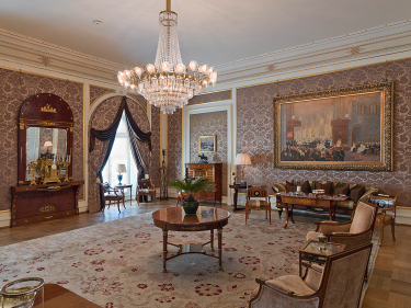 Fredager er det Statsråd på Slottet. Ministersalongen er navnet på rommet hvor medlemmene av Regjeringen samles før de går inn i Statsrådssalen.