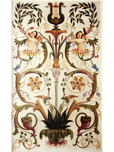 På veggene er det malt blomster og border, og innimellom er det flettet inn bilder av ansikter. Egentlig var dette ment å være guder og gudinner fra antikken, men da spisesalen ble innviet i 1848, var det mange som mente å kjenne igjen personer fra virkeligheten.