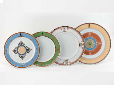 Mønsteret på serviset er hentet fra dekoren på vegger og tak i Store spisesal. Jan Haug, Det kongelige hoff