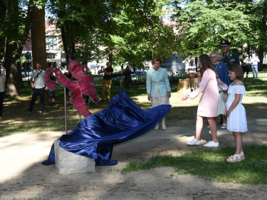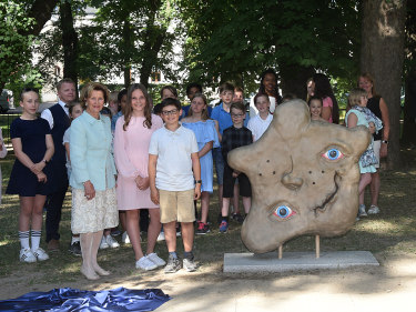 Den første skulpturen som ble avduket i parken var "Kanin i trøbbel". Foto: Liv Osmundsen, Det kongelige hoff.