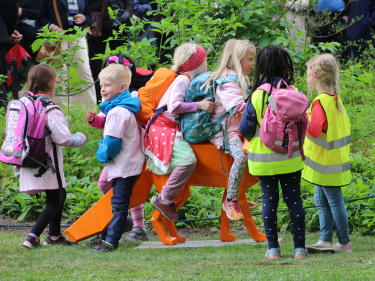 Tusen barnehagebarn var invitert til åpning med boller og saft. Siden har mang en barnehage lagt turen om disse skulpturene - klatret på kaninen, ridd på reven, tittet opp på regnbuen, sittet på marken og studert mannen uten ansikt. Men husk, det er ikke en lekeplass, så vær forsiktige så ingen blir skadet.