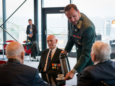 Kronprins Haakon fikk også anledning til å møte noen av veteranene etter seremonien.