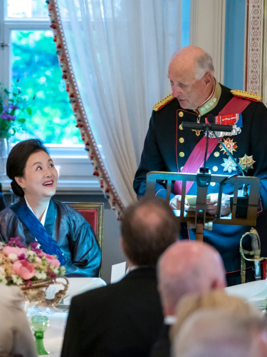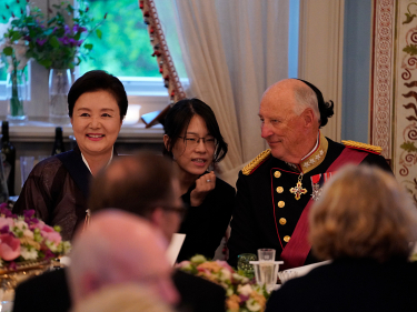 I kveld er det gallamiddag på Det kongelige slott til ære for Koreas president og førstedame. Kong Harald berømmet Korea og Presidenten for gjennomføringen av De olympiske leker i 2018: