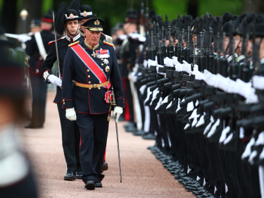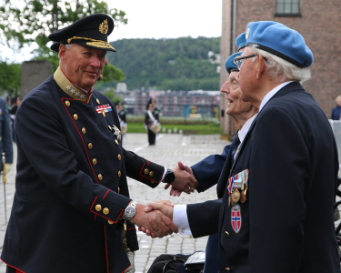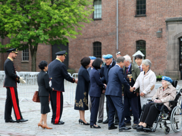 Kong Harald hilser på veteraner fra sanitetsstyrken NORMASH. Foto: Sara Svanemyr, Det kongelige hoff