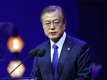 President Moon talte i Universitetsaulaen om veien videre mot varig fred og stabilitet på den koreanske halvøya. Foto: Ryan Kelly / NTB scanpix