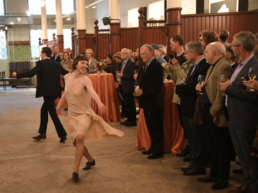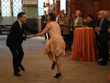 Caroline Johnsen og Audun Kveberg viste gjestene foxtrot - en av Dronning Mauds favoritter. Foto: Sven Gj. Gjeruldsen, Det kongelige hoff.