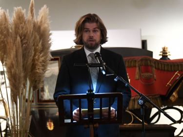 Sjef for De kongelige samlinger, Sigurd Sverdrup Sandmo innleder om utstillingen. Foto: Sven Gj. Gjeruldsen, Det kongelige hoff