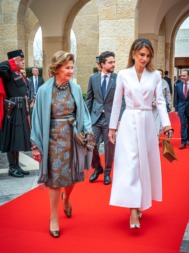 Både Dronning Sonja og Dronning Rania er opptekne av likestilling og kvinners rolle i samfunnet. Foto: Heiko Junge, NTB scanpix
