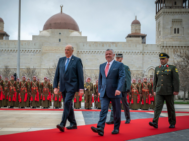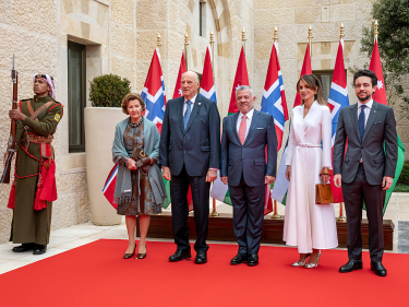 I dag vart Hans Majestet Kongen og Hennar Majestet Dronninga ønskt velkomne til Jordan av Hans Majestet Kong Abdullah II og Hennar Majestet Dronning Rania. Det er første gong Kongeparet er på statsbesøk i Midtausten.