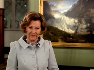 Dronning Sonja lanserer "Kunstaudiens" og Dronning Sonja står selv for den digitale åpningen. Dronningen viser også fram flere av verkene i samtale med Nasjonalmuseets direktør, Karin Hindsbo. Foto: Det kongelige hoff / Nasjonalmuseet.