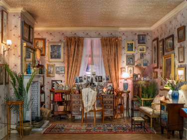 Dronning Mauds arbeidsværelse på Appleton House er gjenskapt i utstillingen ved hjelp av gamle fotografier. Foto: Øivind Möller Bakken, De kongelige samlinger