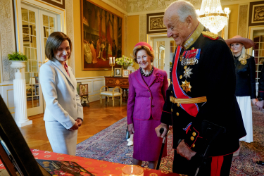Etter seremonien fulgte samtaler og offisiell fotografering i Fugleværelset, etterfulgt av gaveoverrekkelse i Speilsalen.