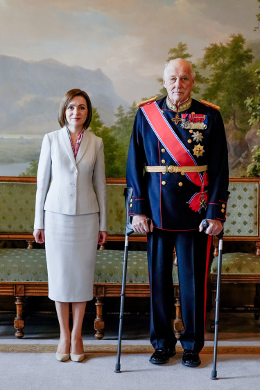 Moldovas president, Hennes Eksellense fr. Maia Sandu innledet mandag sitt statsbesøk til Norge. Hans Majestet Kongen og Hennes Majestet Dronningen er vertskap for besøket, og presidenten ble ønsket velkommen med en høytidelig seremoni på Slottsplassen.