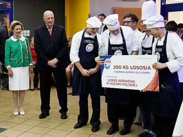 Bare Frankrike importerer mer laks fra Norge enn Polen, og de siste årene har Sjømatrådet samarbeidet med polske kokkeskoler for å øke kunnskapen om tilberedning av norsk laks. I år har de beste skolene sendt 240 deltakere til konkurransen «Norsk fisk i det polske kjøkken», og i ettermiddag stilte tolv lag til finale med Kongen og Dronningen til stede.