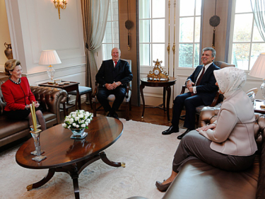 Etter nærmere samtaler mellom Kongeparet og Presidentparet, ledet Kong Harald representanter for den norske delegasjonen i møte med President Gül og hans delegasjon.