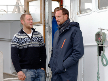 På Lofoten Værøy Brygge møtte Kronprinsparet Tommy Bensvik og Eldar Eilertsen. Dei unge fiskarane har gått saman om eigen båt, «Værøygut», og dei tok Kronprins Haakon og Kronprinsesse Mette-Marit med på ein tur.