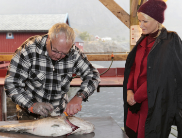 På besøk hos hjørnesteinsbedrifta Lofoten Viking venta ei innføring i dei ulike kvalitetane tørrfisk. Etter ei kort omvising med innlagd tørrfisktapas fekk Kronprins Haakon og Kronprinsesse Mette-Marit forsøkje seg på vraking. Det er viktig å bestemme kvaliteten på fisken, og den høgaste kvaliteten har tradisjonelt gått til middelhavslanda og deira bacalao. Venezia er Værøys vennskapskommune, noko som burde bety at italienarane er godt fornøgde med leveransane.