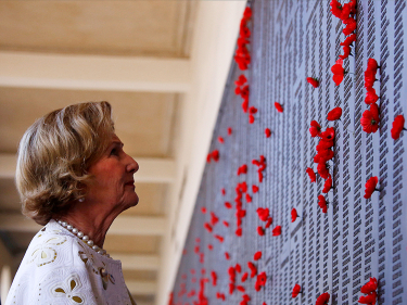 Roll of Honour listar opp namna på soldatane Australia har mista, i bronse. I dag plasserte Kongen og Dronninga kvar sin valmue ved namnet til George Gregory Allman.