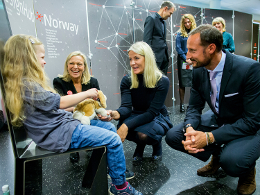 Kronprinsparet fikk også anledning til å møte mange av elevene under gruppearbeidene, samt representanter for DesignHub*Norway, som er et senter for interaksjon mellom personer fra ulike kreative yrker. Her ble det demonstrasjon av "Linusvesten", som er et bæresystem som gjør at barn som trenger næring gjennom sonde likevel kan leve et aktivt liv.