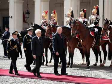 Det er Italias president, Hans Eksellense Sergio Mattarella, som er vert for besøket, og i dag ønsket han Kongeparet offisielt velkommen i en høytidelig velkomstseremoni.