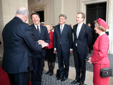 Deres Majesteter Kong Harald og Dronning Sonja innledet et tre dagers statsbesøk til Italia i dag. Kongeparet leder en delegasjon med representanter for norske myndigheter og næringsliv.