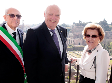 Fra kransnedleggelsen fortsatte Kongeparet opp på Capitolhøyden bak monumentet, der de møtte Romas fungerende ordfører, Francesco Paolo Tronca, til samtaler.