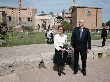 Fra Capitol fikk Kong Harald og Dronning Sonja anledningen til å spasere gjennom Forum Romanum. Kongeparet fikk en omvisning i området, som i flere hundre år var Romerrikets absolutte sentrum.
