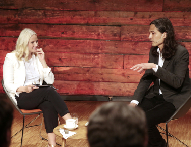 Kronprinsesse Mette-Marit og Jonas Hassen Khemiri, en av Sveriges mest leste unge forfattere, møttes til samtale om forfatterskap. Hans bøker er oversatt til femten språk siden debuten i 2003. I år er han aktuell med en ny utgivelse på norsk.