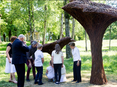 Oslo-ordførar Marianne Borgen overrekte gåva saman med kunstnaren Tom Hare. Briten er kjend for dei vakre skulpturane sine i fletta plantemateriale, som òg er å sjå i Botanisk hage på Tøyen.