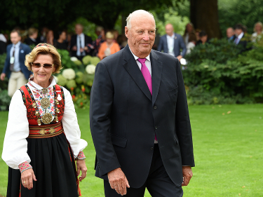 I sommer inviterte Kongeparet til hagefester i byene de besøkte i løpet av sin jubileumsreise langs kysten. I dag var Kong Harald og Dronning Sonja vertskap i "egen hage": Slottsparken. Gjestene kom fra alle landets fylker og fra Svalbard. Det offisielle Norge var på plass, med statsminister Erna Solberg i spissen - i tillegg til mange representanter for organisasjoner De kongelige er beskyttere for.