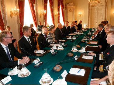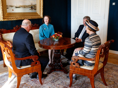 Kong Harald og Dronning Sonja hadde en rekke møter med finske ledere i dag. Etter møtet med Presidenten, ventet samtaler mellom medlemmer av den norske og den finske delegasjonen, og senere med Finlands stortingspresident, Talman Maria Lohela. Møtet fant sted i Lilla Parlamentet, der Kongeparet også hadde samtaler med flere finske parlamentarikere. Om ettermiddagen reiste Kongen og Dronningen til Villa Bjälbo, som er offisiell residens for Finlands statsminister. Samtalene med statsminister Juha Sipilä lot seg kombinere med et lite besøk i Villa Bjälbos vakre hage.