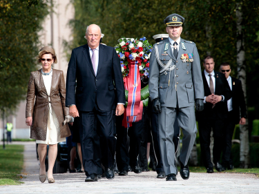 Kong Harald og Dronning Sonja la ned kranser ved Heltekorset og ved marskalk Mannerheims grav. De la også blomster ved minnesmerket over norske frivillige. Om lag 700 nordmenn kjempet for Finland i Vinterkrigen, og to av dem er begravet her.