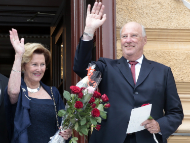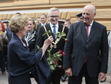 Mange barn var møtte opp med flagg og roser til Dronning Sonja da Kongeparet kom til rådhuset til lunsj. I talen sin sa Kongen seg imponert over kva han hadde sett på universitetet, og ønskte dei lykke til i samarbeidet med norske bedrifter og institusjonar: