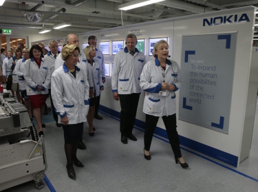 Rundt år 2000 var Nokia verdas største produsent av mobiltelefonar. I dag er dei leiande innan nettinfrastruktur og kart- og posisjonsservice. Kongeparet fekk ei innføring i Nokias historie i dag, i tillegg til ei omvising i fabrikklokala.