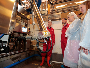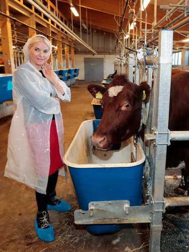 De fikk også demonstrert en melkerobot som både fester seg til juret og foretar selve melkingen helt automatisk. En robot kan betjene et fjøs med om lag 60 kyr. Under omvisningen var forskning på hvordan vi skal få til en mer effektiv og sunn husdyrproduksjon med mindre utslipp et viktig tema.
