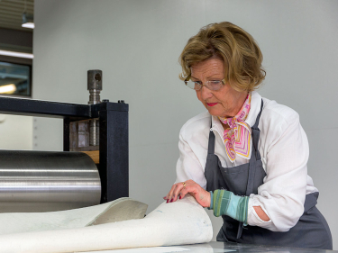 Dronningen arbeider i verkstedet til Artica Svalbard. Foto: Olav T. Søla