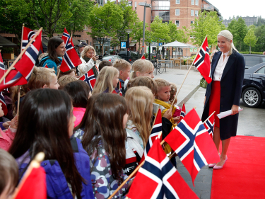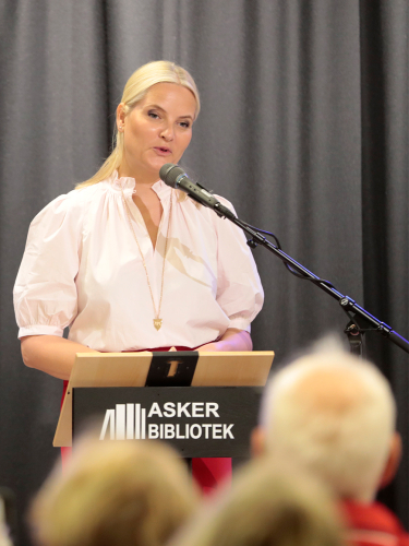 Kronprinsessen ankommer dagens åpning på Asker bibliotek. Foto: Lise Åserud, NTB scanpix.