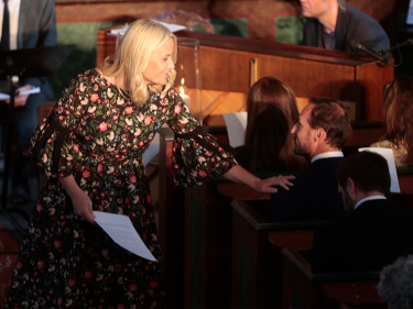 Det var salmene "Vi rekker våre hender frem" og "Noen må våke" som salmene under bryllupet, og Hans Kongelige Høyhet Kronprinsen var også til stede i kirken i går kveld.