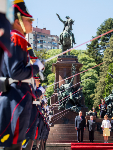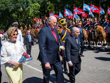 Hans Majestet Kongen la ned krans på Nasjonalmonumentet i Buenos Aires i formiddag. Kransnedleggelsen markerte starten på Kongeparets tre dager lange statsbesøk til Argentina.