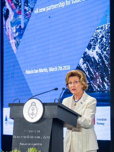 Men dagens program startet et helt annet sted: Dronning Sonja åpnet det store næringslivsseminaret "Norge-Argentina. Nytt partnerskap for verdiskapning". Rundt 20 norske bedrifter er allerede etablert i Argentina, og en rekke norske næringslivsledere deltar på seminaret. Målet er å bidra til økt samhandel mellom Norge og Argentina.