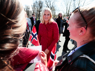 Presidentparet og Kronprinsparet hilste flaggene til tonene av de to lands nasjonalsanger, og Kronprins Haakon inspiserte æresgarden ledsaget av President Vējonis.