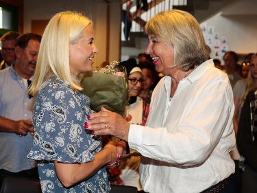 Elisabeth Glesne og Andreas Haaland i samtale med Kronprinsessen. Foto: Lise Åserud / NTB scanpix