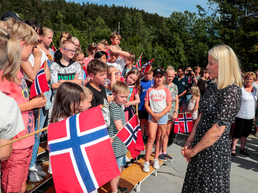 Kronprinsessen startet dagen på sin gamle ungdomsskole i Vågsbygd i Kristiansand. Her, på Fiskå ungdomsskole, inviterte Kronprinsessen og forfatter Tiril Broch Aakre skriveglade ungdommer til et skrivekurs som strakk seg over to skoletimer.