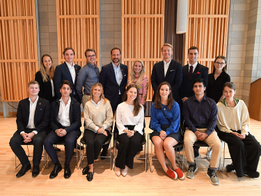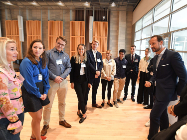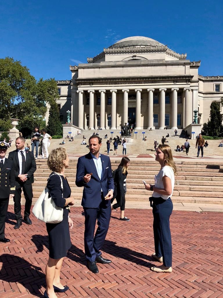 Kronprinsen fikk også anledningen til å snakke med norske studenter ved universitetet her. Foto: Eileen Barroso/Columbia University