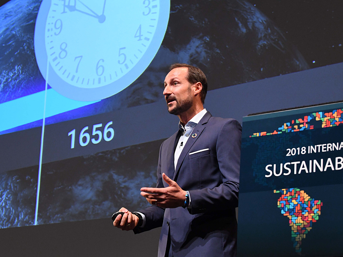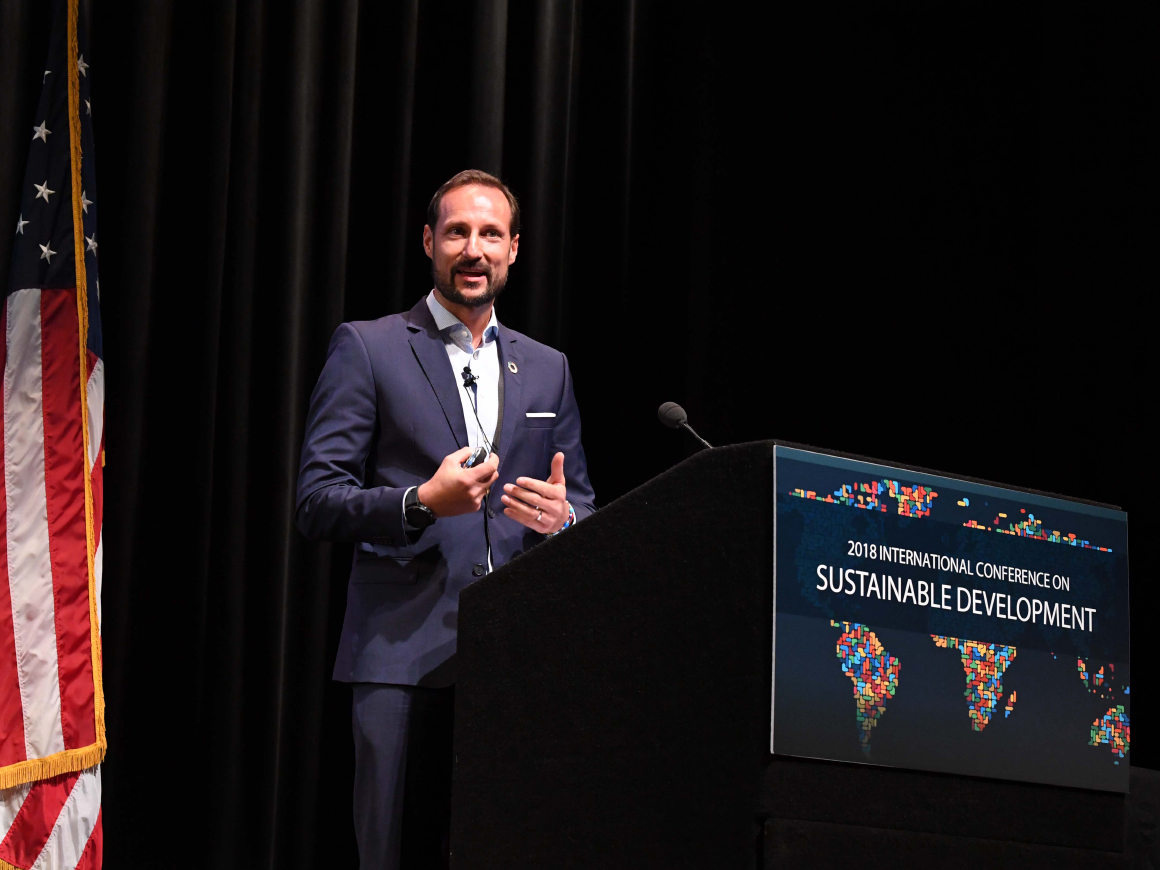 Kronprins Haakons foredrag på den store konferansen om bærekraftig utvikling ved Columbia University, New York - International Conference on Sustainable Development. Foto: Columbia University