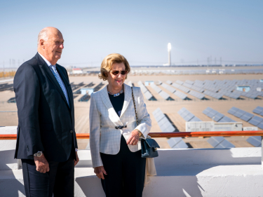 Kongeparet besøker det store solkraftverket utenfor Dunhuang. Foto: Heiko Junge, NTB scanpix Kull er stadig en svært viktig energikilde i Kina, men det investeres nå betydelige ressurser i fornybar energi og miljøvennlige teknologiske løsninger. Kina sto alene for godt over halvparten av all nyinstallert solkraft i 2017, og inntar en ledende rolle i den globale klimakampen. At Kina med sine mer enn 1,4 milliarder innbyggere lykkes med ambisiøse mål er helt vesentlig for at verden som helhet skal nå bærekraftmålene.